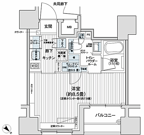 オートロック、エレベーター、宅配ボックス、追い焚き、浴室乾燥機、洗濯乾燥機、システムキッチン、フローリング、エアコン、BS/CS/CATV、インターネット対応
