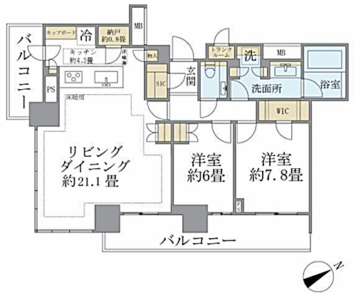 オートロック、エレベータ、TVモニター付インターホン、防犯カメラ、宅配ボックス、追い焚きバス、24H換気システム、浴室乾燥機、室内洗濯置き場、フローリング、バス・トイレ別、独立洗面台、システムキッチン、2口コンロ、エアコン、BS/CS/CATV、都市ガス、インターネット接続可、コンシェルジュサービス、ゲストルーム(有料)