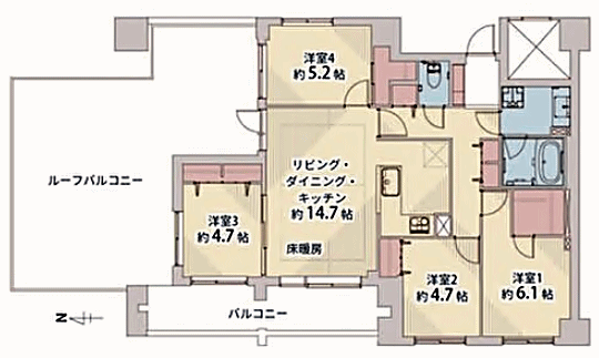 オートロック、エレベーター、防犯カメラ、宅配ボックス、全居室フローリング、ウォークインクローゼット、食洗機、3口以上コンロ、温水洗浄便座、床暖房、ルーフバルコニー、CATV、新耐震基準