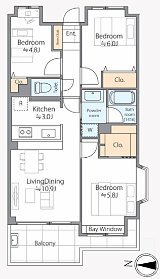 杉並区の中央部に位置し、北にJR中央線の線路、東は環八通りに接し、域内を善福寺川が流れる南荻窪。環八通りの荻窪二丁目交差点から西に2ブロックほど入った1丁目の閑静な住宅街に建つ分譲マンション「エクレールガーデン南荻窪」のご紹介です。1996年3月竣工のRC造地下1階付地上3階建て総戸数19戸、落ち着いた色の外壁や美しく植栽が施されたファサードが都会的な印象の低層マンションです。専有面積は60.11㎡~69.60㎡、間取りが2LDK~3LDKとディンクスやファミリーにお勧めの住まいです。お部屋は最上階3階西向きで採光・通風良好な3LDK(67.70㎡)、対面カウンターシステムキッチンのある約13.9帖のLDKやウォークインクローゼット、トランクルーム、スロップシンクなどがあります。2025年12月にキッチン・浴室・トイレや内装などの新規内装リノベーション済です。最寄り駅はJR中央・総武線「荻窪」駅徒歩12分、または東京メトロ丸ノ内線「荻窪」駅徒歩12分の2駅2路線が利用でき、都心部へのアクセスも良好です。荻窪駅北口にはルミネやタウンセブン、西友などの大型商業施設が並び、南口にもコープをはじめ各種商店やレストラン、カフェなどが軒を並べる商店街が充実しています。学区は区立荻窪小学校(約600m・徒歩約8分)、区立宮前中学校(約800m・徒歩約11分)となります