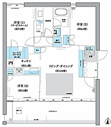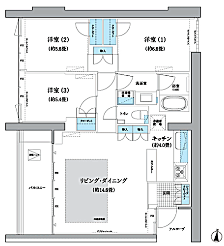 オートロック、エレベーター、宅配ボックス、エアコン、床暖房、室内洗濯機置場、バス・トイレ別、追焚機能、浴室乾燥機、システムキッチン、フローリング、インターネット(光ファイバー)、BS/CS/CATV、コンシアージュサービス、フィットネスルーム、スタディルーム、トランクルーム