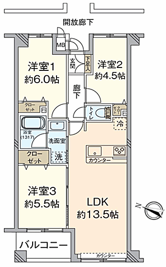 エレベーター、オートロック、ガス給湯器、都市ガス、玄関ディンプルキー、カウンターキッチン